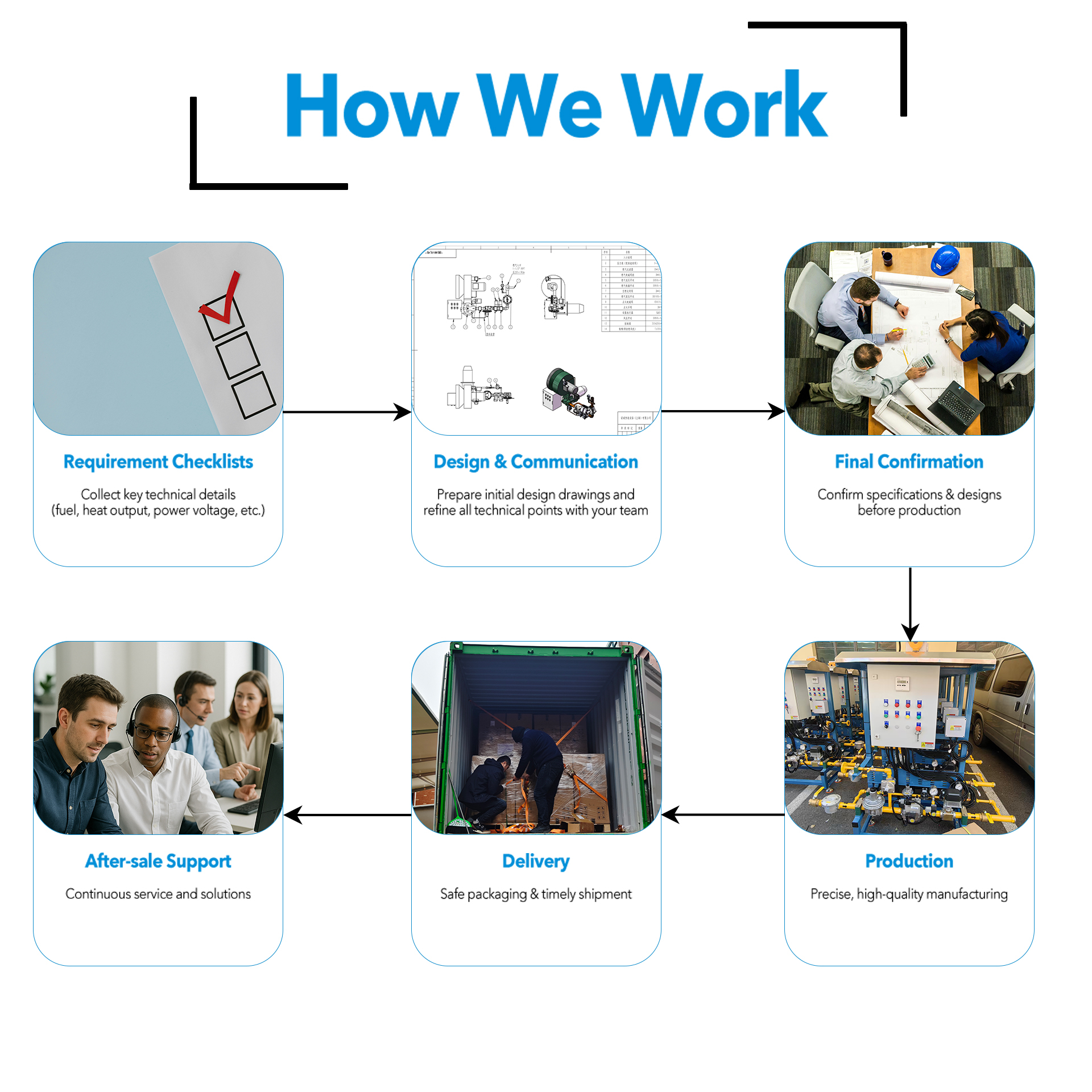 औद्योगिक खाद्य प्रसंस्करण उपकरण दहन आवश्यकताओं के लिए डिज़ाइन की गई कुशल औद्योगिक बर्नर प्रणाली